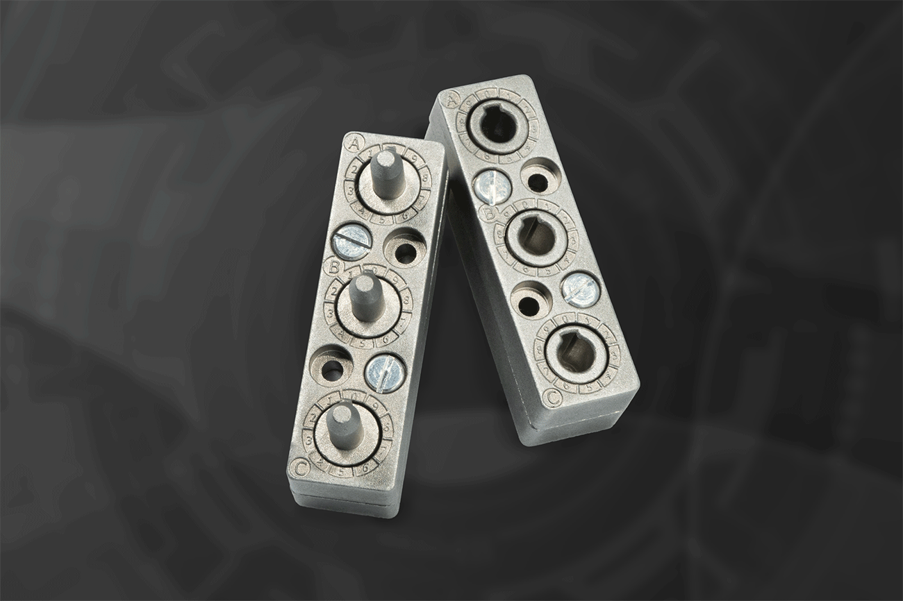 Unsere mechanische Kodierung (Coding Device) sorgt für maximale Betriebssicherheit und verhindert Fehlbestückungen zuverlässig. Das System ist mit 3 verstellbaren Nasen ausgestattet. Jeder einzelne Kodierstift verfügt über 10 Einstellpositionen (0–9) und lässt sich komfortabel einstellen.